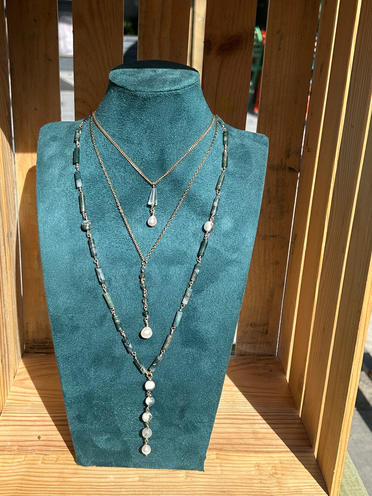 Embrace the enchantment of this layered stack, beginning with the delicate beauty of our new Muse necklace, paired effortlessly with the Musgos y Mar and the Verdant, our iconic classic chain. If green and gold are your heart’s true colors, this ethereal combination was made just for you. All hand made by Adilene.
